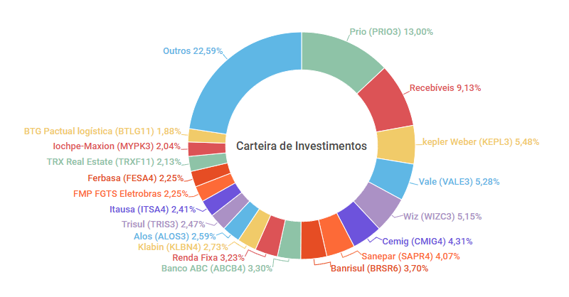 - PRIO3 (Prio): Aquisição de 25 ações, elevando o peso no portfólio para 13% (+0,92 p.p.). Mantemos a convicção no ativo, fundamentada na solidez operacional e no valuation atrativo.